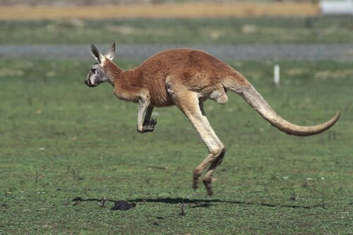 Kangaroos can move so fast. The power comes from their strong legs. These animals can make a jump up to 3 times of their height. They can also leap by using both legs. This animal cannot walk backwards, but it can swim.