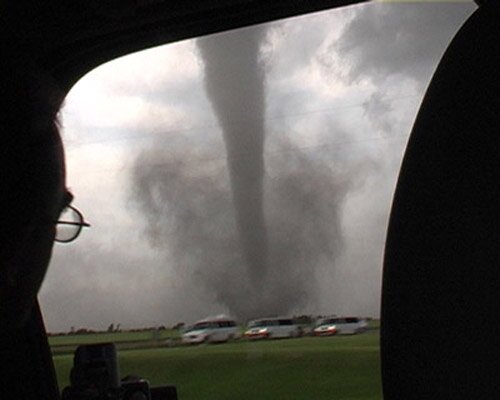 You will always see that the tornado looks black and dark. Such color occurs because of the debris and dust taken. If such materials are gone, you can see the transparent tornado.